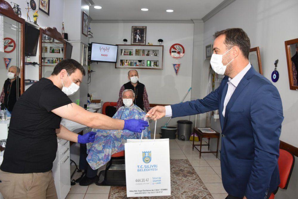 Koronavirüs salgın hastalığına karşı alınan tedbirler kapsamında İçişleri Bakanlığı genelgesi ile kapatılan kuaför, berber ve güzellik salonları 11 Mayıs itibarı ile yeniden hizmete açıldı. Silivri Belediye Başkanı Volkan Yılmaz, ilk iş günlerinde esnafları ziyaret ederek hediyeler verdi. Ziyaretler esnasında hijyen ve sosyal mesafe kuralını hatırlatan Başkan Yılmaz, belediye tarafından verilen dezenfekte hizmetinin belirli aralıklarla devam edeceğini söyledi. Haftada bir dezenfekte yapılacağını belirten Başkan Yılmaz, özel olarak hazırlanan ve içerisinde 2 adet önlük, 2 adet siperlik ve bakım seti bulunan hediye paketini takdim etti.
