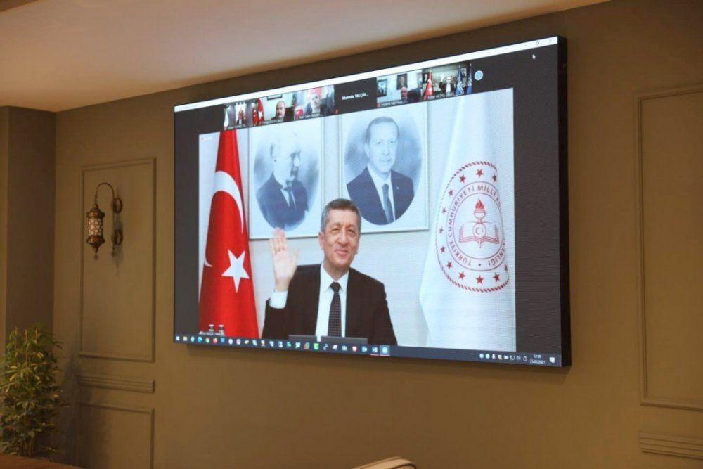 Başkan Volkan Yılmaz, video konferans yöntemi ile gerçekleştirilen toplantıda Milli Eğitim Bakanı Ziya Selçuk’a, salgın döneminde eğitim alanında gerçekleştirdikleri projeleri, hedeflerini ve önerilerini aktararak şunları paylaştı: