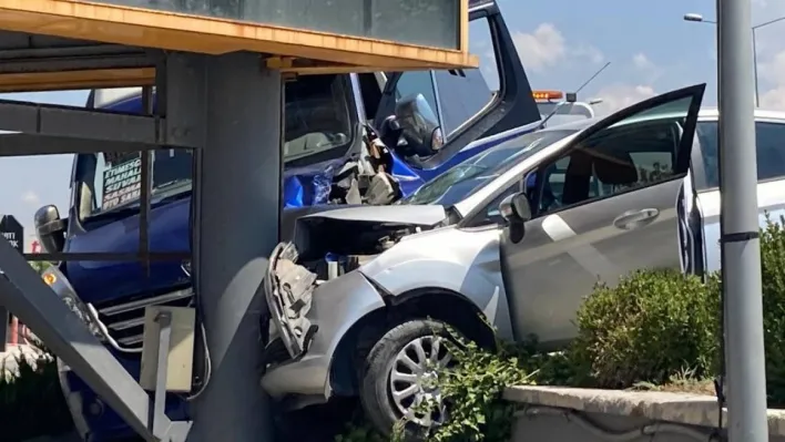 Başkent'te AVM girişinde iki araç reklam direğine çarptı: 7 yaralı