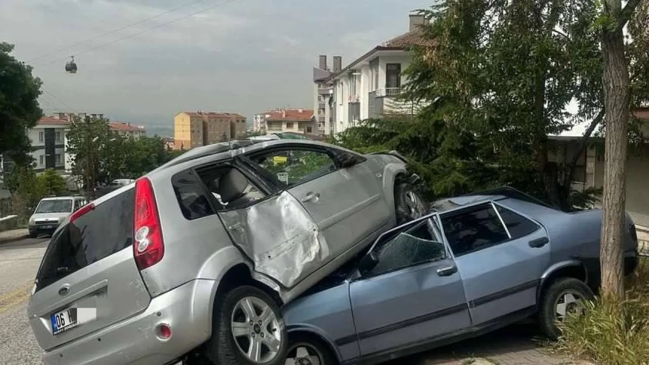 Kaza, Yenimahalle ilçesi Ergenekon Mahallesi’nde meydana geldi. Edinilen bilgilere göre, sürücüsünün direksiyon hakimiyetini kaybettiği otomobil, park halindeki bir araca çarptı. Çarpmanın etkisiyle üst üste binen otomobiller görenleri şaşkına çevirdi.