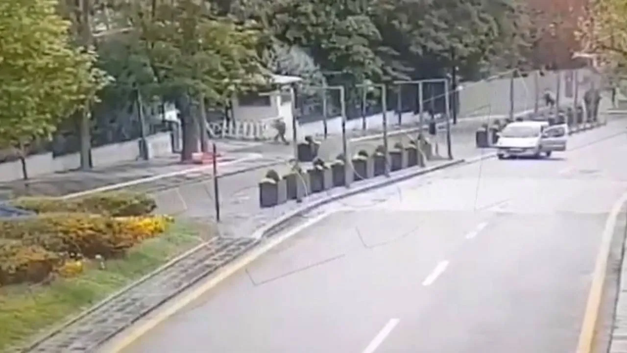 Ankara’da 2 teröristin İçişleri Bakanlığı Emniyet Genel Müdürlüğü giriş kapısına yönelik yaptığı bombalı saldırıya ilişkin yeni görüntülere ulaşıldı. Görüntülerde teröristlerin hafif ticari araç ile yanaştığı ve polislere ateş ettiği görüldü. Ateş ederek polislerin üstüne koşan bir terörist, sonra üstündeki bombayı patlattı. Diğer teröristin ise elindeki silah ile ateş ettiği görüldü. O anlar anbean güvenlik kameralarına yansıdı.