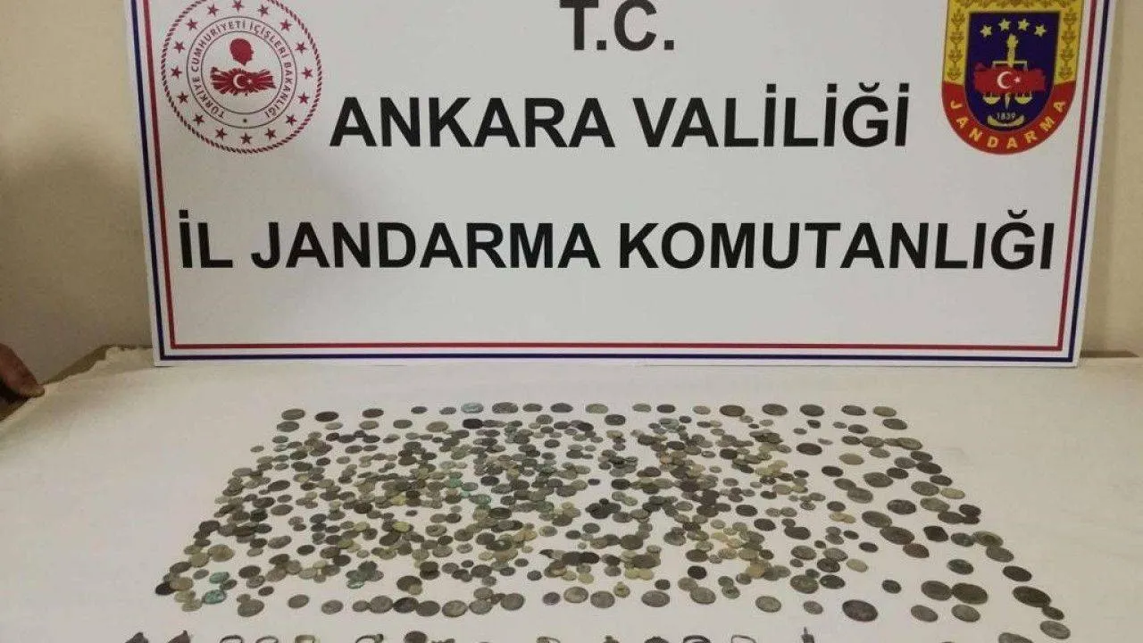 Ankara'da jandarma ekiplerince tarihi eser kaçakçılığına yönelik bir eve yapılan operasyonda, 680 adet çeşitli dönemlere ait sikke ele geçirildi.