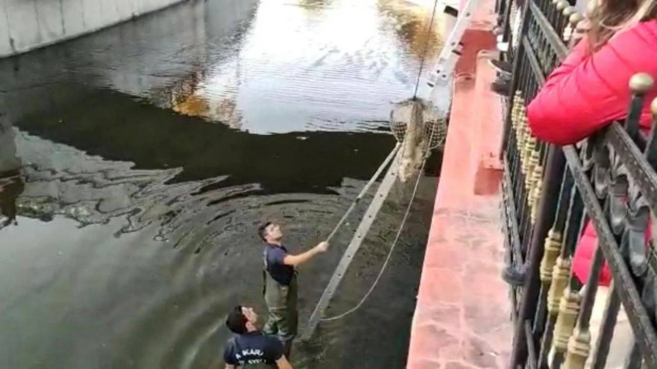Ankara'da çocukların kovalaması sonucu kanalizasyon kanalına düşen kedi, itfaiye ekiplerince kurtarıldı.