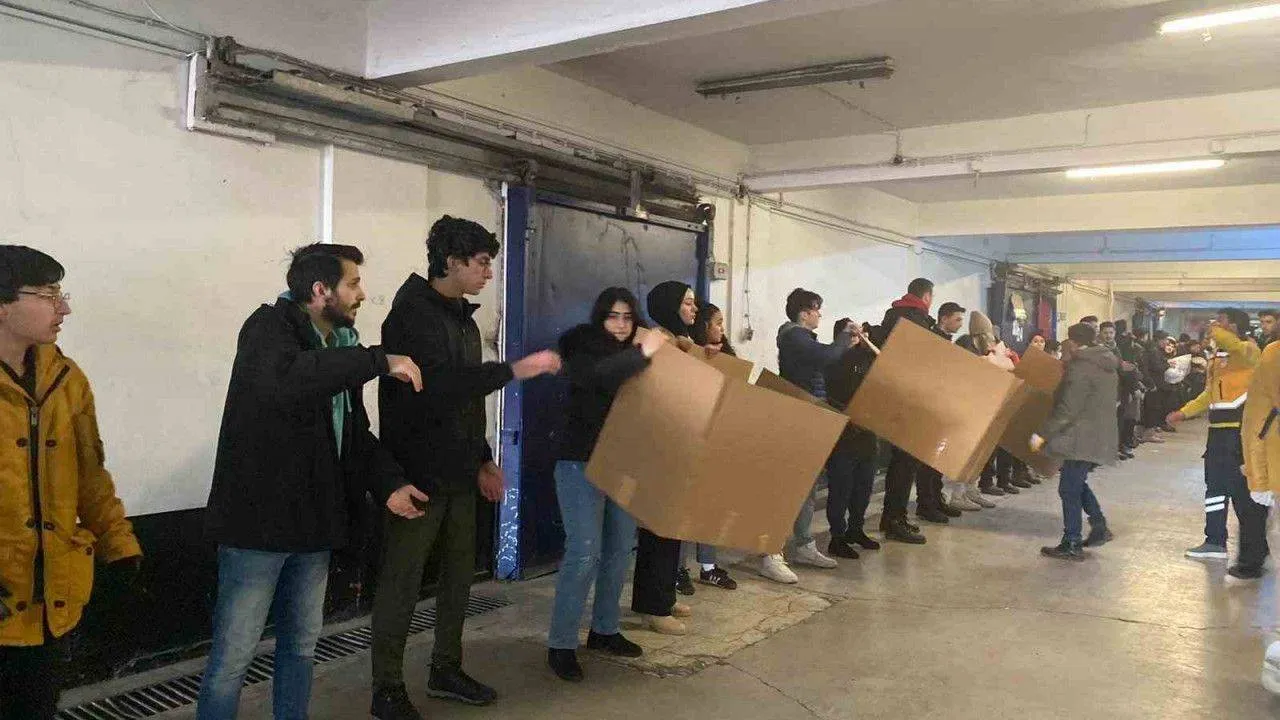 Deprem bölgelerine ulaştırılmak üzere toplanan yardımlar tırlara yüklenerek yola çıktı. Tırların yaklaşık 10 saat içerisinde bölgelere ulaşacağı belirtildi.