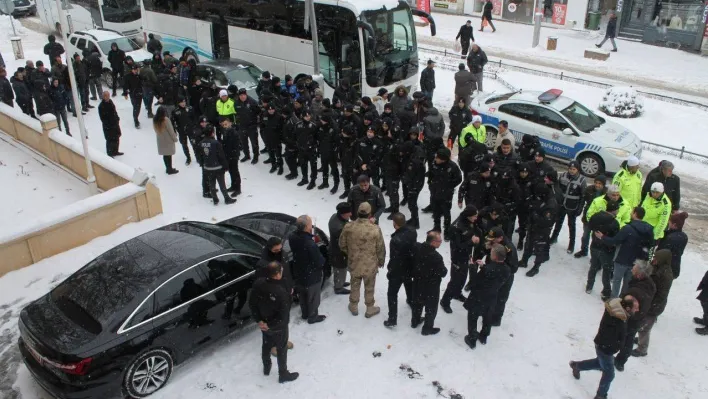 Bayburt Valiliği önünde toplanan emniyet mensupları arkadaşlarıyla, aileleriyle vedalaştıktan sonra otobüse binerek deprem bölgesine hareket etmek üzere yola koyuldular.