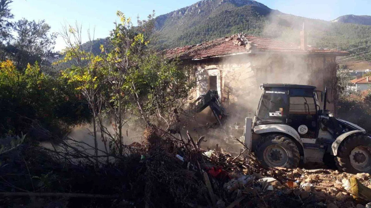 Bilecik’in Bayırköy beldesinde metruk binalar tek tek yıkılıyor.