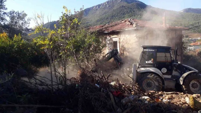Bilecik'in Bayırköy beldesinde metruk binalar tek tek yıkılıyor.