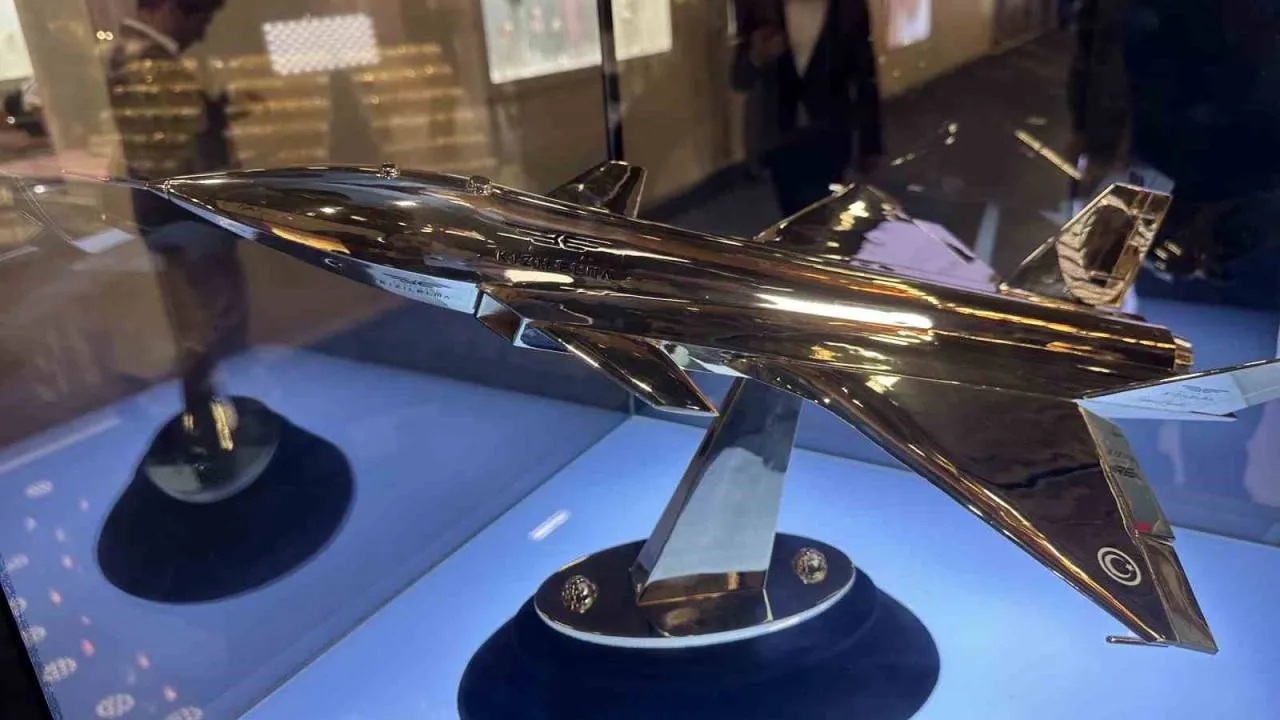 Bayraktar Kızılelma'nın altın maketi mücevher fuarında parlıyor