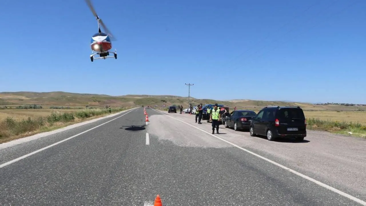 Trafik Jandarma ekipleri bayram tatili için yollara çıkan yolcuların güvenli bir şekilde seyahat etmesi için sık kullanılan bağlantı yollarında Cayrokopter (Döner kanatlı ve pervaneli bir hava taşıtı) ile havadan trafik denetimleri gerçekleştirdi.