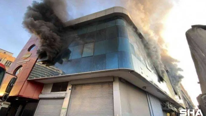 Yangın sonrası binadan yükselen siyah bulutlar dron ile havadan görüntülenirken, itfaiye ekipleri tarafından kontrol altına alınan yangında bir süre soğutma çalışması yapıldı.