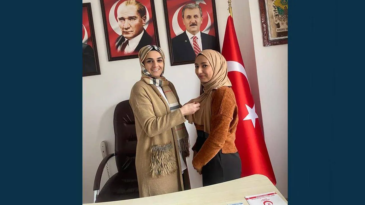 Büyük Birlik Partisi Silivri İlçe kadın kolları başkanı Selin Dayıoğlu Sarı, partiye yeni katılan üyelere rozetlerini parti merkezinde taktı.
