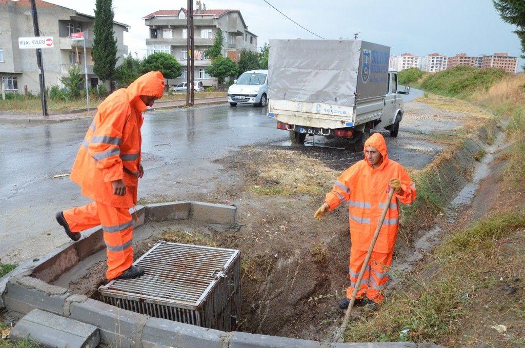 Silivri Belediyesi'ne bağlı ekipler, ilçede etkisini gösteren şiddetli yağışlar sırasında tüm ilçeyi dolaşarak olası sel baskını ve taşmalara karşı önlemler aldı.