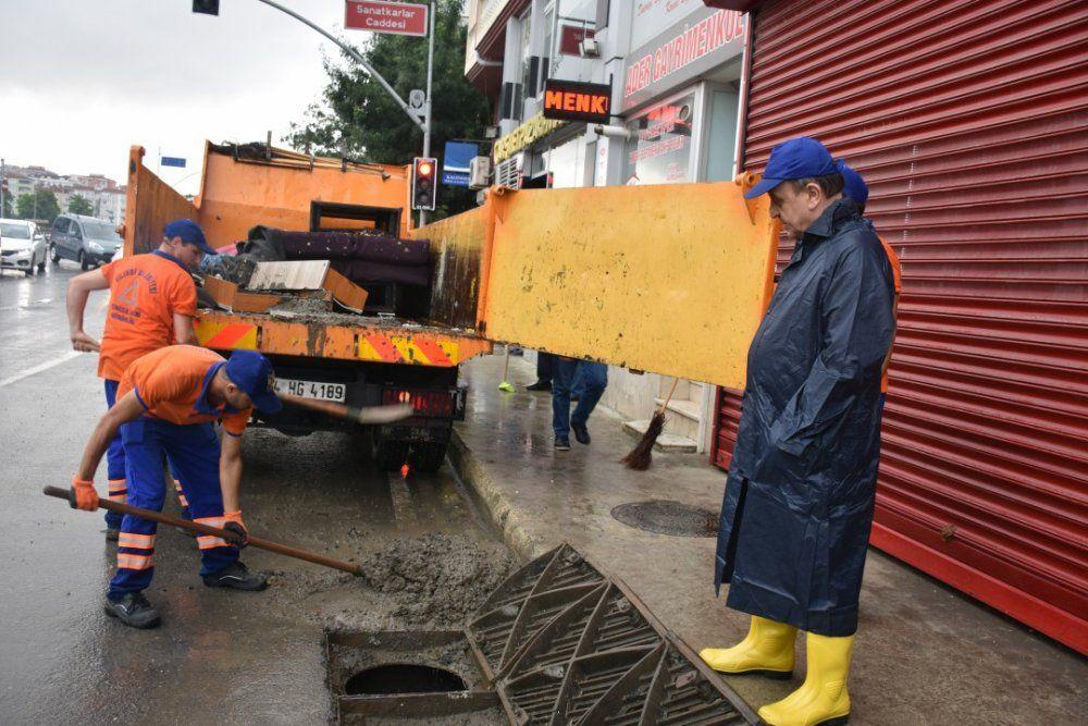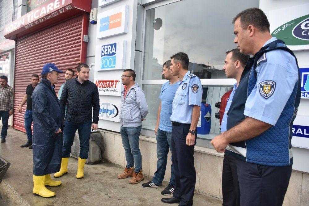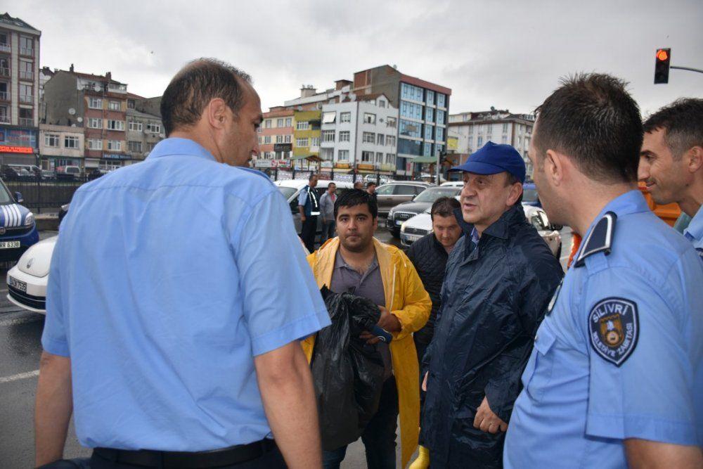 Silivri Belediyesi'ne bağlı ekipler, ilçede etkili olan şiddetli yağışlar sırasında tüm ilçeyi dolaşarak olası sel baskını ve taşmalara karşı önlemler aldı.