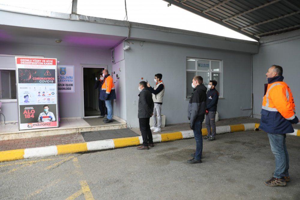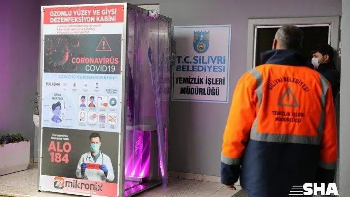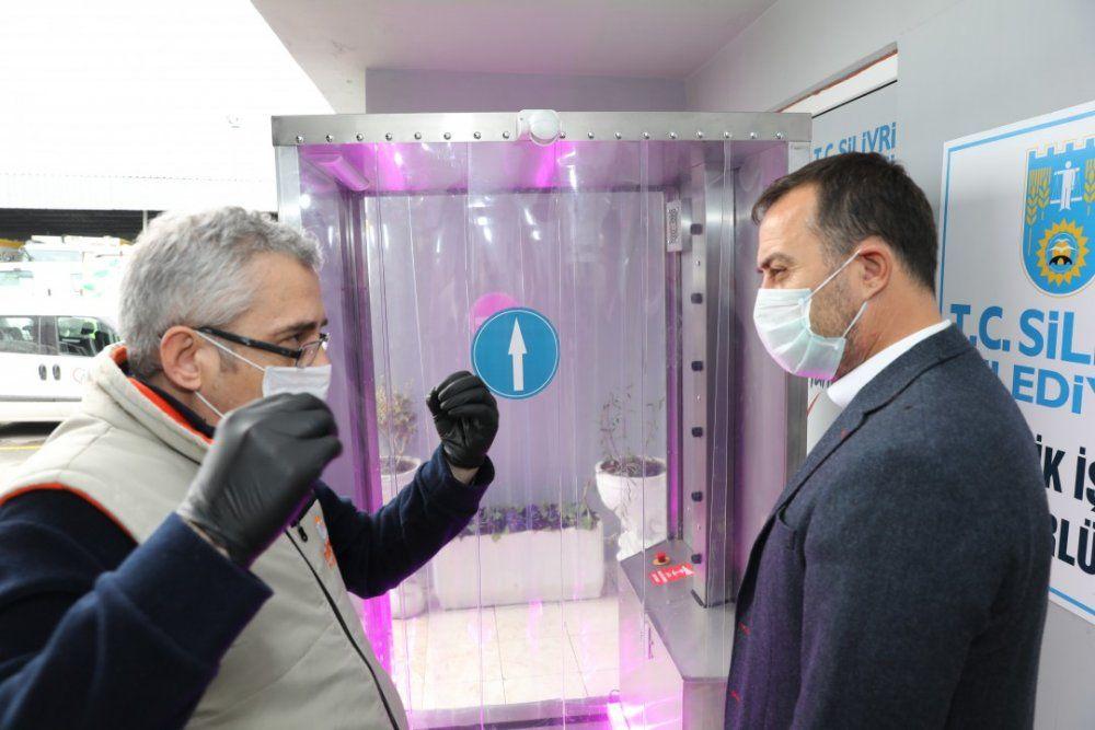 Silivri Belediyesi, koronavirüs tedbirleri kapsamında Temizlik İşleri Müdürlüğü binasına dezenfeksiyon kabini yerleştirdi. Belediyenin saha personeli kabinde dezenfekte olarak mesaiye başlıyor.