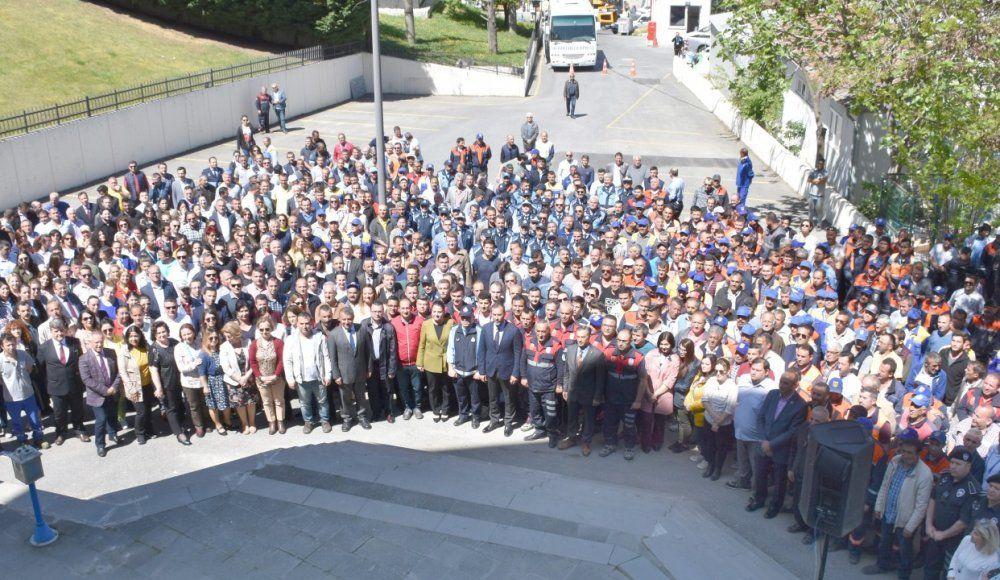Silivri Belediye Başkanı Volkan Yılmaz, belediye hizmet binası arkasında personeli ile bir araya gelerek 1 Mayıs Emek ve Dayanışma Günü’nü kutladı. Çalışma arkadaşlarına seslenen Başkan Yılmaz, birikmiş ikramiyelerin ilk diliminin ödeneceğini müjdeleyerek, “Çalışanlarımıza alın teri kurumadan ücretinin ödenmesi gerekir. Bu bir başlangıç olsun, arkası seri adımlarla gelir inşallah” dedi. Yeni görev dönemine ilişkin bilgilendirme yaptıktan sonra Başkan Yılmaz, personelin durumu hakkında önemli bir konuşma gerçekleştirdi. Özellikle vatandaşlara güler yüzlü hizmet verilmesi için uyarı yapan Başkan Yılmaz, adalet ve eşitlik ilkelerinden asla taviz verilmeyeceğinin altını çizdi.