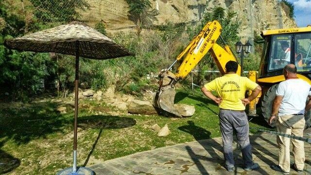 Bugün öğle saatlerinde Boşnak Bahçe mevkiinde çay bahçelerinin olduğu kısımda yarlardan kopan kaya parçaları düşmüş, çay bahçesindeki masa ve sandalyeleri parçalamıştı.