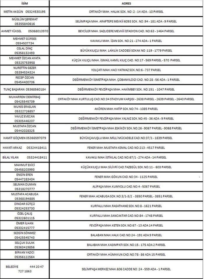 -Belediyemizce izin verilen kurban kesim yerlerinde meydana gelecek herhangi bir olay karşısında Zabıta Müdürlüğü’ne 444 2047 1552 - 212 727 1045 numaralı telefonlardan haber verilmelidir.