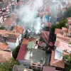 Öte yandan, kül olan ahşap binanın çöktüğü anlar saniye saniye cep telefonu kamerasına yansıdı.
