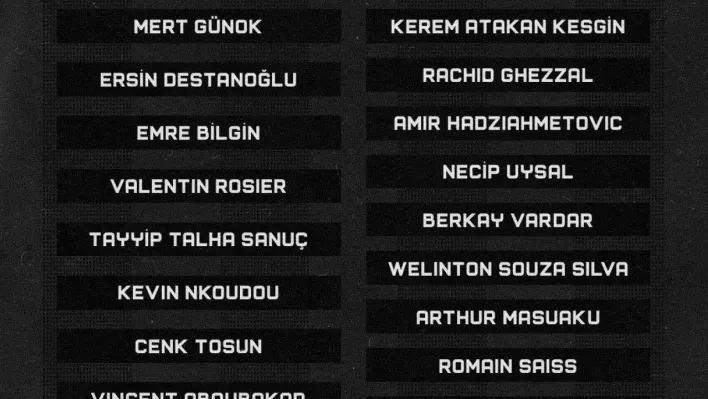 "Mert Günok, Ersin Destanoğlu, Emre Bilgin, Welinton, Tayyip Talha Sanuç, Emrecan Uzunhan, Necip Uysal, Valentin Rosier, Tayfur Bingöl, Arthur Masuaku, Umut Meraş, Berkay Vardar, Atiba Hutchinson, Rachid Ghezzal, Kerem Atakan Kesgin,Amir Hadziahmetovic, Romain Saiss, Dele Alli, Kevin Nkoudou, Cenk Tosun, Jackson Muleka, Oğuzhan Akgün ve Vincent Aboubakar."