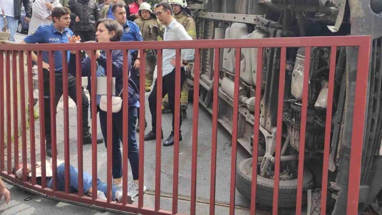 Beşiktaş'ta içinde sürücü bulunmayan minibüs yokuş aşağı kayarak önce bir kadına, sonra da doğalgaz kutusuna çarpıp devrildi. Minibüsün çarptığı doğalgaz kutusunda patlama meydana gelince paniğe kapılan vatandaşlar, sızıntı kesilene kadar yaralı kadına müdahale edemedi.