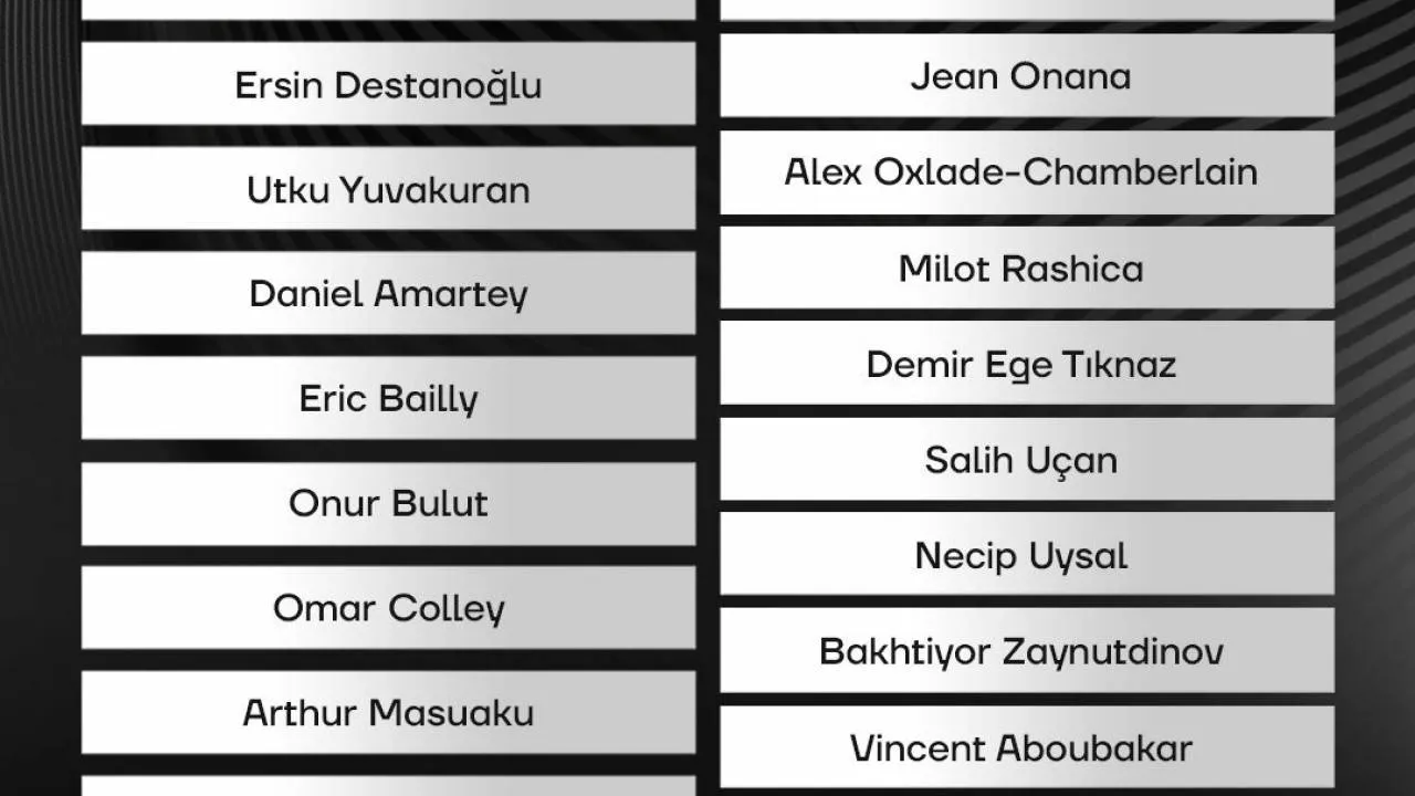 "Mert Günok, Ersin Destanoğlu, Utku Yuvakuran, Vincent Aboubakar, Daniel Amartey, Eric Bailly, Tayfur Bingöl, Onur Bulut, Gedson Fernandes, Omar Colley, Rachid Ghezzal, Amir Hadziahmetovic, Semih Kılıçsoy, Arthur Masuaku, Jackson Muleka, Jean Onana, Alex Chamberlain, Milot Rashica, Ante Rebic, Valentin Rosier, Demir Ege Tıknaz, Cenk Tosun, Salih Uçan, Necip Uysal, Bakhtiyor Zaynutdinov."