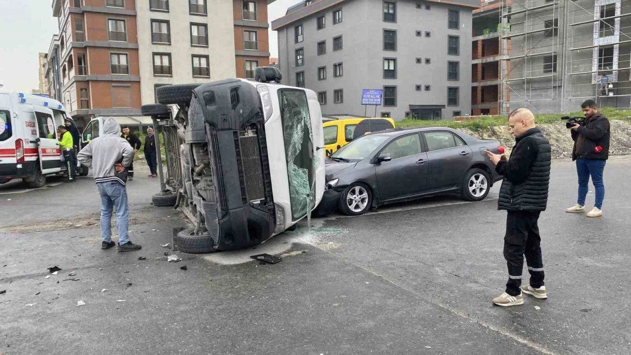 Olay, Marmara Mahallesi Olimpiyat Caddesi’nde meydana geldi. Edinilen bilgilere göre 34 EVZ 623 plakalı ticari minibüse kavşakta yavaşladığı esnada 34 FBJ 699 plakalı kamyonet çarptı. Çarpmanın etkisi ile ticari minibüs, 34 VB 6627 plakalı hususi aracın üzerine devrildi. Ticari minibüs içerisinde kapılar kapandığı için sıkışan 1’i sürücü 2’i kişi vatandaşlar tarafından camı kırılarak hafif yaralı şekilde dışarıya çıkarıldı. Olay yerine ihbar üzerine polis ve sağlık ekipleri sevk edildi. Yaralıların durumunun iyi olduğu öğrenilirken, polis kazayla ilgili rapor tuttu. Kazaya karışan araçlar ise, çekici tarafından olay yerinden otoparka çekildi.