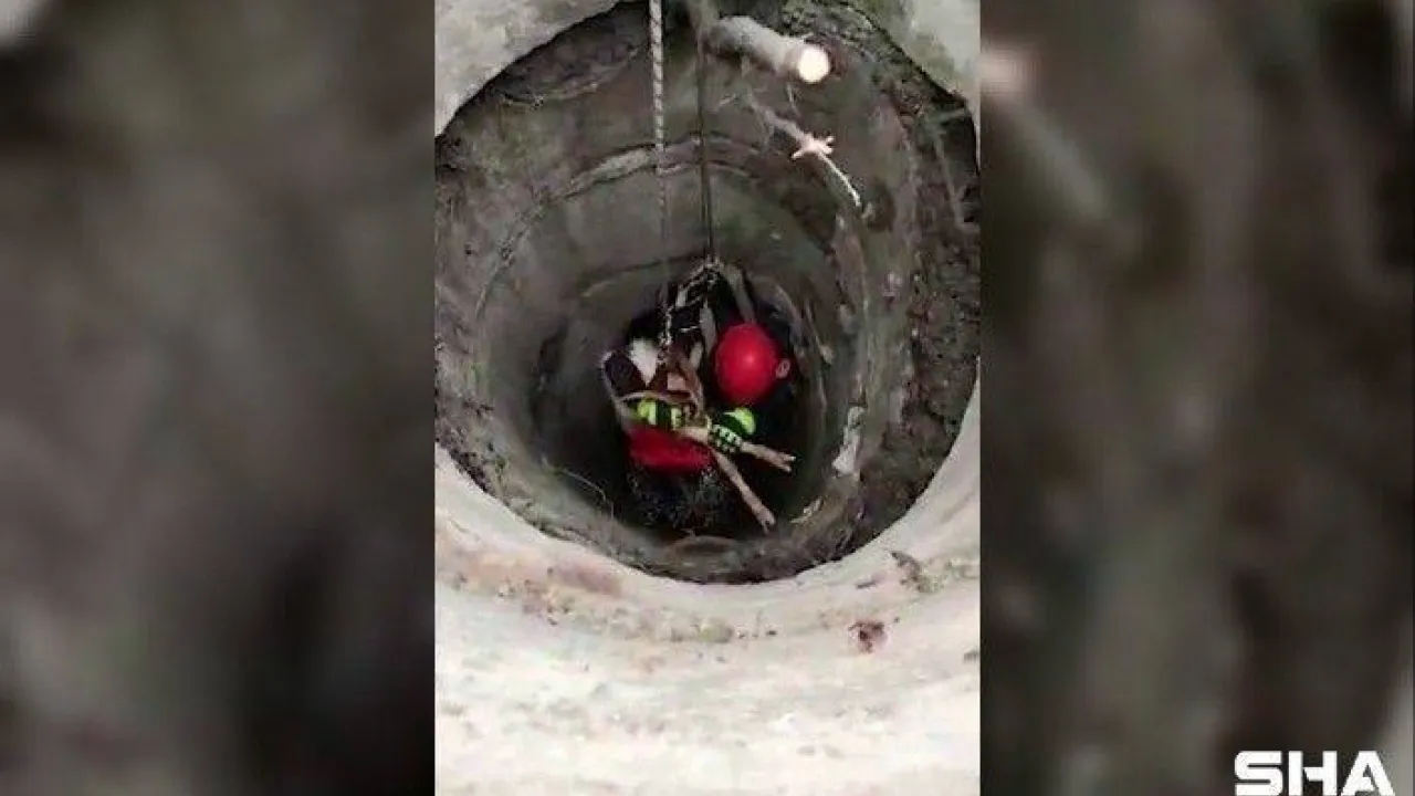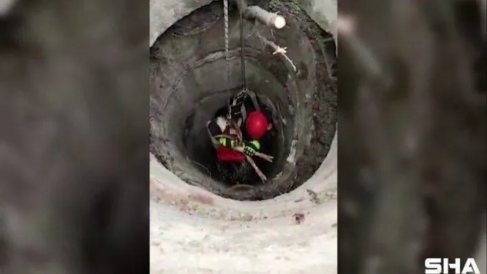 Beylikdüzü'nde bir bahçede otlayan keçi, metrelerce derinlikte içi su dolu kuyuya düştü. Bir itfaiye erinin beline halat bağlanıp kuyuya salınması ile kurtarılan keçinin o anları ise cep telefonu kamerasına yansıdı.