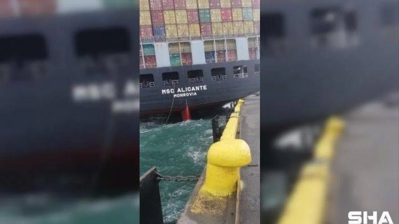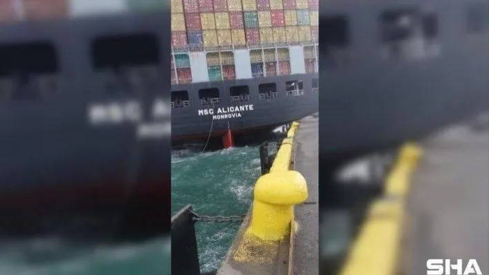 Beylikdüzü'nde bulunan Marport Limanı'nda Liberya bayraklı 270 metre boyundaki MSC ALICANTE isimli konteyner gemisi baş taraftan karaya oturdu.