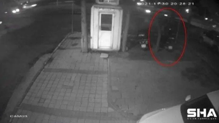 Yaşanan hırsızlık anları güvenlik kamerası tarafından kaydedildi. Görüntülerde hırsızlık şüphelisinin motosiklete yaklaşıp baktıktan sonra motosikleti iterek götürdüğü görülüyor.