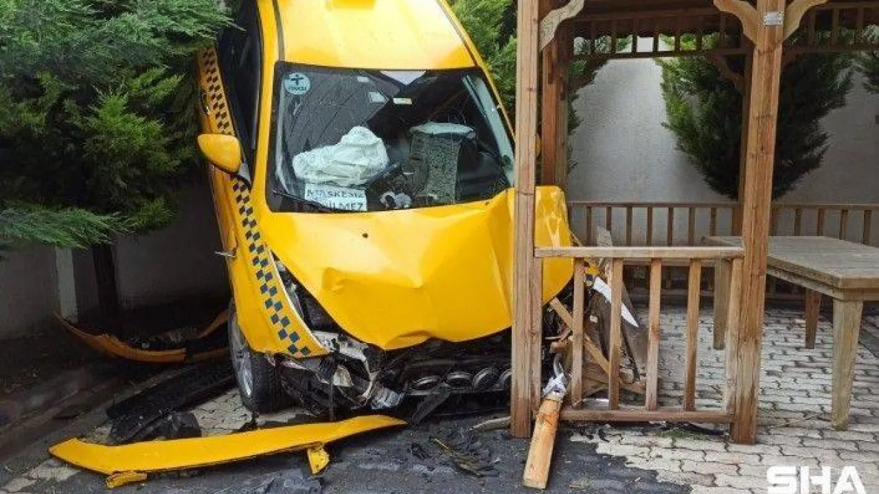 Beylikdüzü'nde ticari taksi sitenin bahçesine uçtu