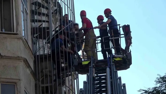 Beyoğlu'nda 5 katlı otelin yangın merdivenine çıkarak intihar etmek isteyen yabancı uyruklu bir kişi, polis tarafından kelepçelenerek kurtarıldı.