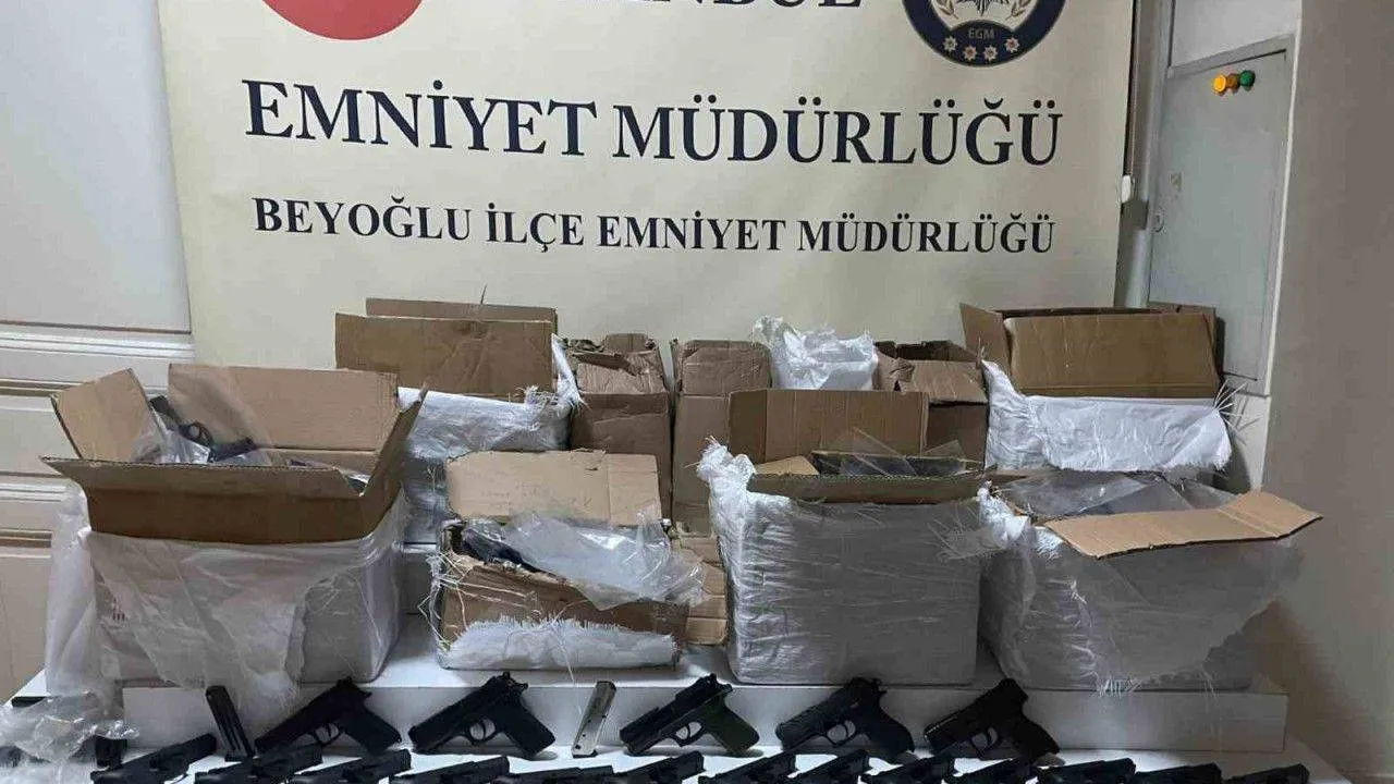 Beyoğlu polisinden silah operasyonu: Otopark ofisinde onlarca silah ele geçirildi