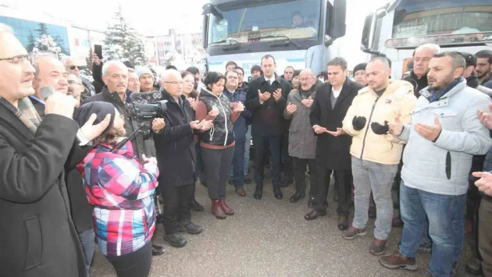 Konuşmaların ardından yapılan dua sonrasında yardım tırları ile gönüllüleri taşıyan otobüs ve araçlar Hatay’a gitmek üzere yola çıktı.
