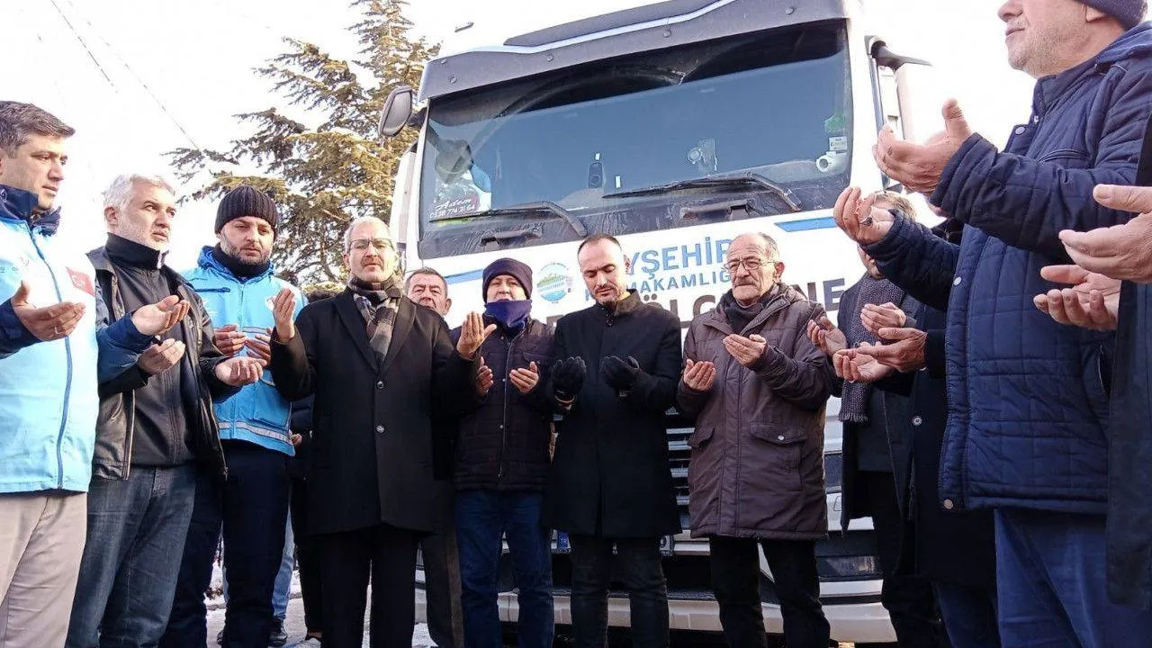 Beyşehir Kaymakamlığı öncülüğünde başlatılan, Beyşehir Belediyesi, kamu kurum ve kuruluşları, sivil toplum kuruluşları ile gönüllülerin destek verdiği yardım kampanyası devam ediyor. Beyşehir’de toplanan 6 tır dolusu yardım malzemesi deprem felaketinden en çok etkilenen illerin başında gelen Hatay’a gönderilmişti. Yardım kampanyasında Beyşehirliler depremzedelere olan desteği hız kesmedi. 1 tır ve 3 kamyon dolusu toplanan yardım malzemesi bu kez de deprem felaketinin merkez üssü olan Kahramanmaraş iline gönderildi. Yardım malzemesini taşıyan araçlar anıt alanındaki yardım toplama yerinden İlçe Müftüsü Veysel Kükrek tarafından yaptırılan duanın ardından hareket etti.