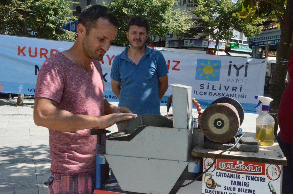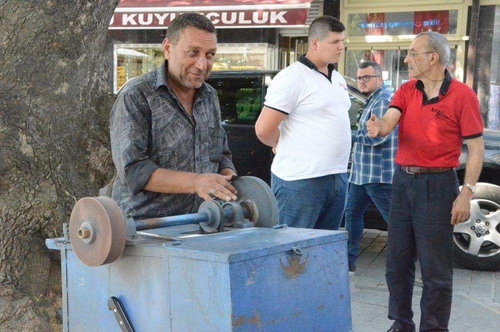Vatandaşların yoğun talebi karşısında çalışma saatlerini artıran bıçak bileme ustaları, günün geç saatlerine kadar Uğur Mumcu meydanında çalışacaklarını söyledi.