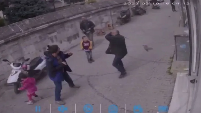 Yaşanan korku dolu anlar, bir iş yerinin güvenlik kamerasına yansıdı. Görüntülerde yolda karşılaşan iki kişinin tartıştığı, ardından kavga ettiği görülüyor. Darbedilen şahsın yanındaki bıçağı birkaç kez diğer şahsa savurduğu ve yaraladığı anlar da kameraya saniye saniye yansıdı. Bıçaklanan şahsın yanında bulunan iki çocuğun kavganın ortasında kaldığı, korkan bir çocuğun motosikletin arkasına saklandığı görülüyor.