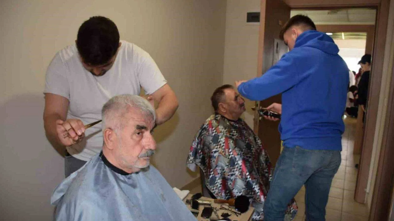 Deprem bölgelerinden Biga’ya gelerek Kredi Yurtlar Kurumu (KYK) Ahmet Bican Öğrenci Yurdu’na yerleştirilen depremzedelere, kişisel bakım hizmeti veriliyor.
