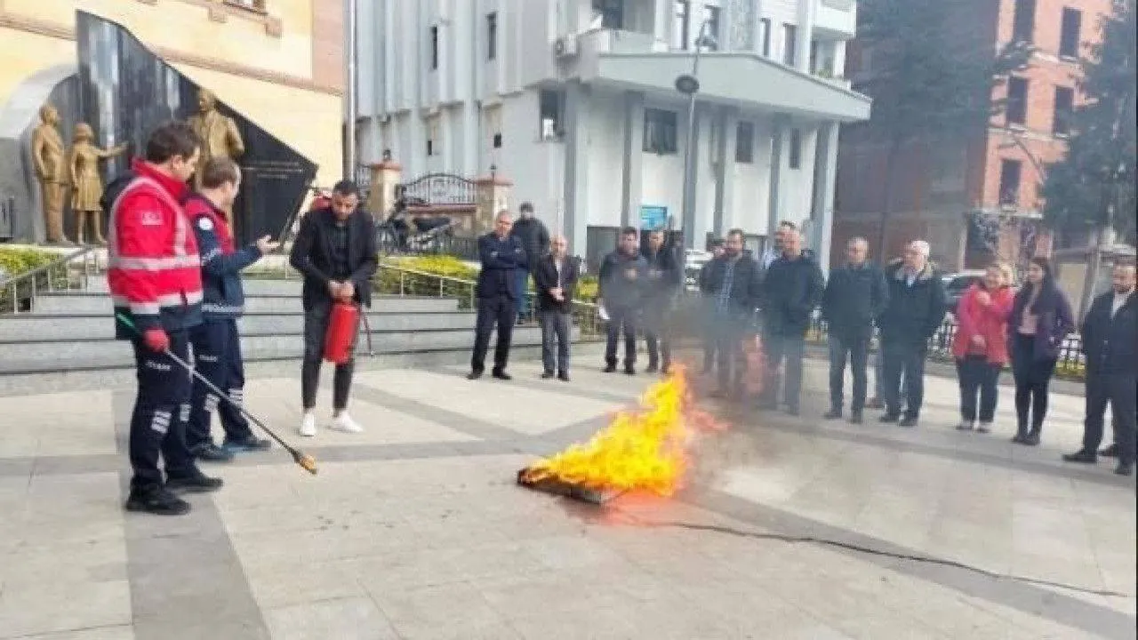 Çanakkale'nin Biga ilçe Kaymakamlığı personeline Biga Belediyesi İtfaiye Müdürlüğü ekiplerince yangın eğitimi verildi.