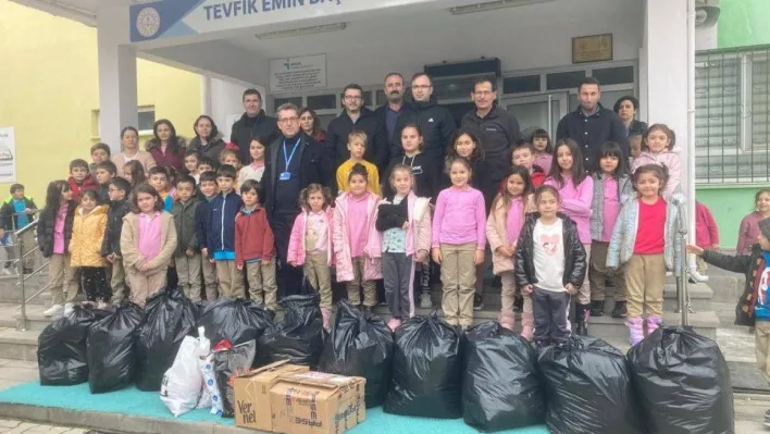Çanakkale'nin Biga ilçesinde Tevfik Emin Başarır İlkokulu öğrencileri giysi yardım kampanyası düzenledi.
