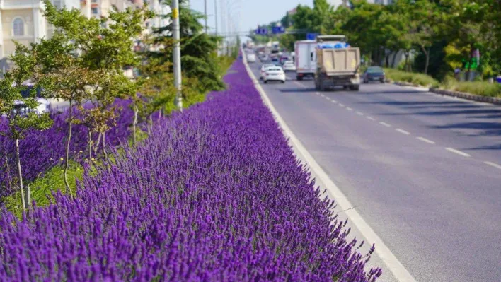 Bilecik orta refüjünü süsleyen lavantalar çiçek açtı