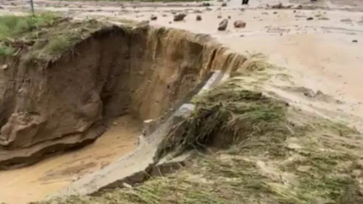 Bilecik'te aniden bastıran sağanak yağış Söğüt-İnhisar kara yolunu ikiye böldü
