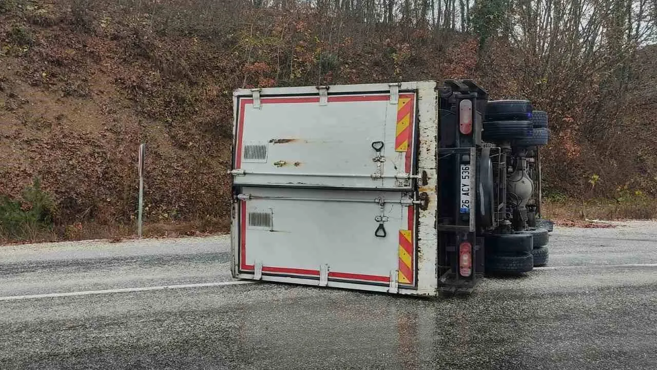 Alınan bilgilere göre; Pazaryeri- Bursa kara yolunun Gümüşdere köyü Ahıdağı mevkisinde seyir halindeki 26 ACY 536 plakalı tır sürücüsü Onurcan A. virajı alamayınca direksiyon hakimiyetini kaybederek aracını devirdi. Kazada sürücü ve araç içinde yolcu olarak bulunan Metin E. yaralandı. Yaralılar olay yerine gelen 112 Acil Servis ekiplerince yapılan ilk müdahalenin ardından Pazaryeri İlçe Devlet Hastanesine kaldırıldı.