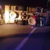 Bilecik'te seyir halindeki kontrolden çıkan domates yüklü kamyon devrilirken, yaşanan trafik kazasında 2 kişi yaralandı.