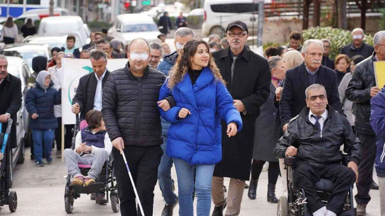 Günün anlam ve önemini ortaya koymak amacıyla gerçekleştirilen yürüyüşte, kimi katılımcılar göz bandıyla gözlerini kapatarak yürüdü, kimi tekerlekli sandalye ile ulaşım yaptı.