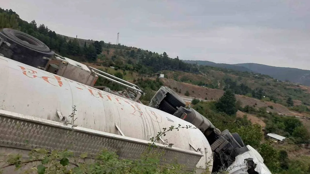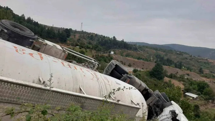 Bilecik'te hammadde yüklü kamyon devrildi: 1 yaralı