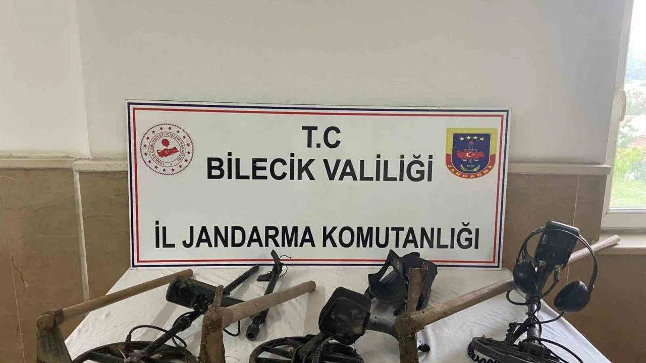 Bilecik merkeze bağlı Vezirhan Beldesinde Bilecik İl Jandarma Komutanlığı ekiplerince tarihi eser bulmak maksadıyla izinsiz kazı yapıldığı tespit edilmiştir. Bu çerçevesinde yapılan operasyonda B.Y., S.Ö. ve R.D. isimli şüpheli şahıs suçüstü yakalandı. Şahıslar ile birlikte kazı esnasında kullanılan 3 adet dedektör ve 3 adet kazma ele geçirildi. Şahıslar gözaltına alınırken, haklarında yasal işlem başlatıldı.