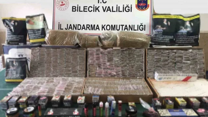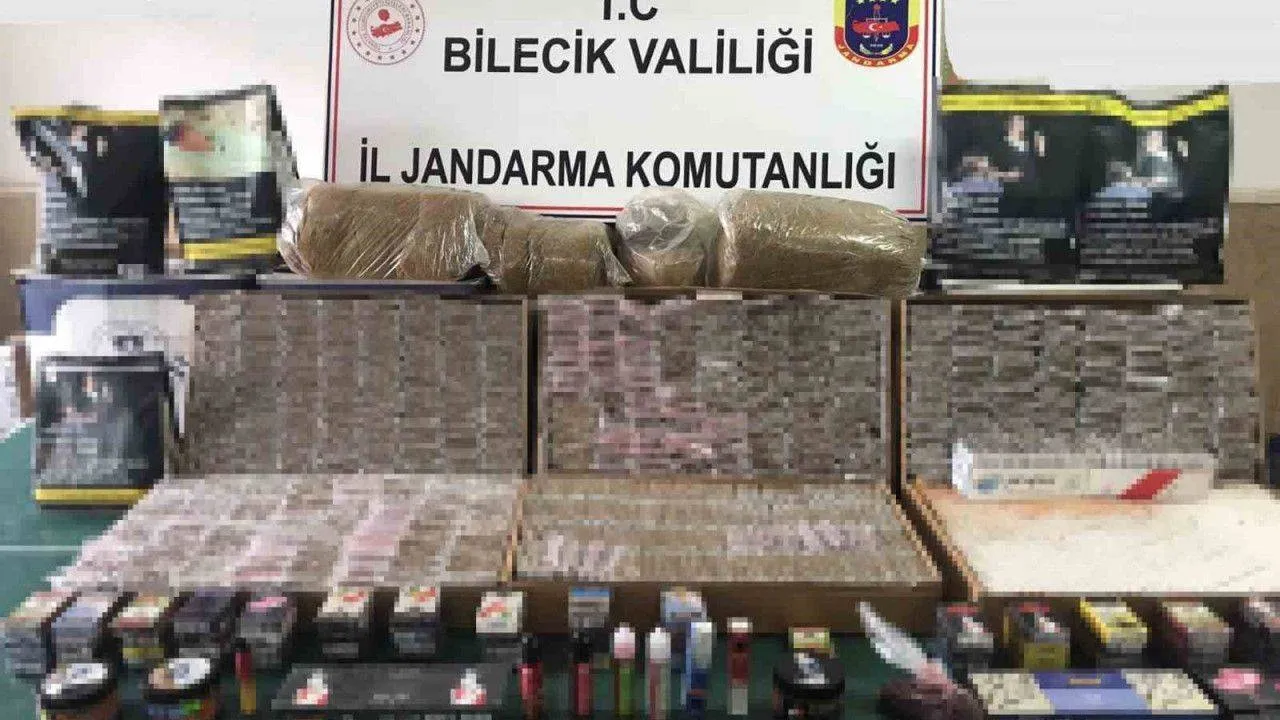 Edinilen bilgiye göre, Bilecik İl Jandarma Komutanlığı Kaçakçılık ve Organize Suçlarla Mücadele Şubesi ekipleri ihbar üzerine H.S. isimli kişiye ait işyerine baskın yaptı. Yapılan aramada 56 bin 340 adet içi tütün doldurulmuş makaron, 22,655 gram kıyılmış tütün,95 adet nargile tütünü, 4 adet nargile likit aroması ve 770 gram tütünü ele geçirdi.