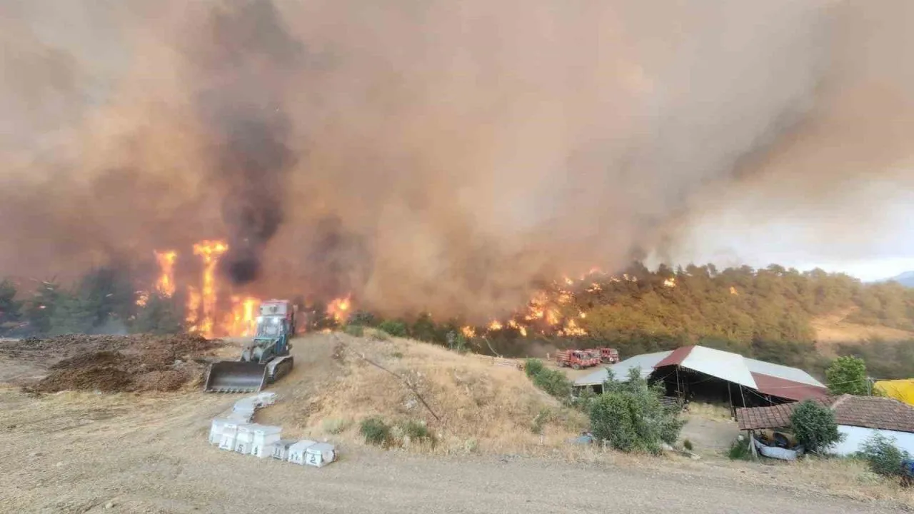 Bilecik'te bugün öğleden sonra yeniden başlayan orman yangınında alevler Kazancı köyüne ulaştı. Köy ile yangın bölgesi arasındaki ağaçlar kesilerek set oluşturuldu.