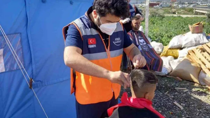 Hatay’ın Antakya ilçesinde eski hayvan pazarı çadır kentinde olduklarını anlatan berber Tahir Dere, "Bilecik AFAD valilik tarafından düzenlenmiş berberlik hizmeti için burada hizmet ediyoruz, emeği geçen arkadaşlara teşekkür ediyoruz. Şu an Hatay’da bulunuyoruz Bilecik’ten geldik. Bilecik Valiliğinin düzenlemiş olduğu gönüllü berberler teşvikiyle gönüllü olarak Hatay’da hizmet ediyoruz. Çocukları, ihtiyacı olan insanları tıraş ediyoruz" dedi.