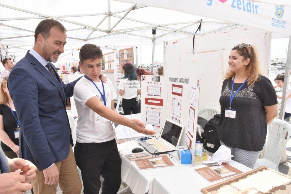 Silivri Belediye Başkanı Volkan Yılmaz, Silivri İlçe Milli Eğitim Müdürlüğü tarafından düzenlenen Bilim ve Robotik Kodlama Şenliği ürün stantlarını ziyaret etti.